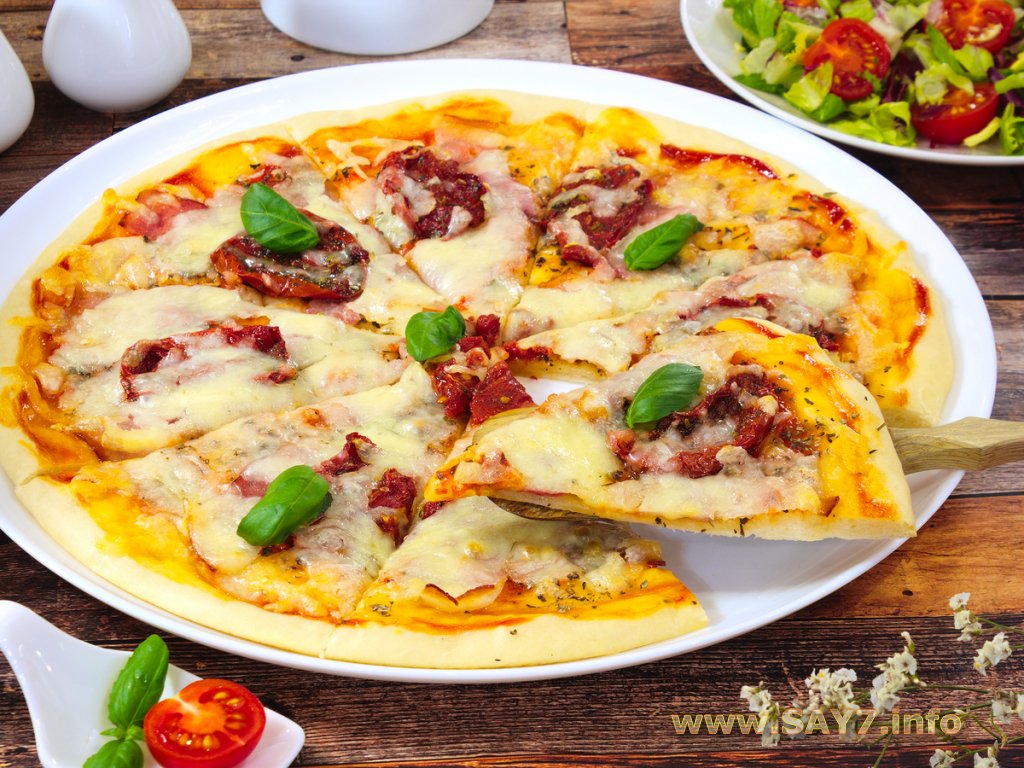 Из указанного количества ингредиентов получается две пиццы диаметром 30 см.