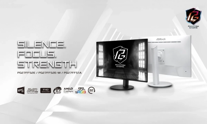 Флагманская троица Phantom Gaming — PG27FFS2E, PG27FFS2E-W и PG27FFS1A — получила 27-дюймовые IPS-панели с разрешением Full HD, частотой обновления 240 Гц и временем отклика 1 мс. Все три поддерживают AMD FreeSync Premium, что устраняет разрывы картинки без существенной нагрузки на GPU. Охват цветового пространства sRGB составляет 99%, так что мониторы подходят не только для шутеров, но и для работы с медиаконтентом. Отдельно выделяется PG27FFS2E-W: это первый белый монитор в линейке ASRock, рассчитанный на тех, кто строит эстетически изящные сетапы. Мелочь, но заметная.