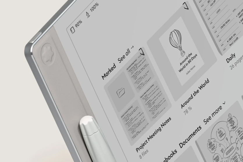 Новинка работает на основе монохромной E Ink-панели, покрытой стеклянным слоем и защищенной алюминиевым корпусом. Вместе с электронным блокнотом поставляется стилус, внешне похожий на премиальные линеры компании. Он поддерживает обратную тактильную связь, 4000 уровней чувствительности к нажатию, имеет сменные наконечники и заряжается беспроводным способом. Ручку можно закрепить с помощью магнита в специальном углублении на передней панели. Она подключается через Bluetooth 5.4. Но производитель не стал использовать эту связь для передачи аудио на беспроводные наушники или колонки. В то же время компания предлагает мобильное приложение для синхронизации.