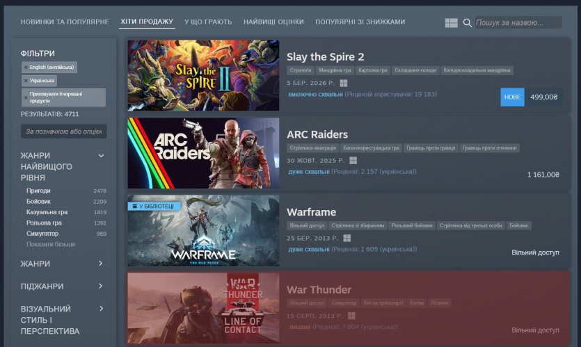 После начала полномасштабной войны вопрос происхождения контента стал принципиальным для большинства украинских пользователей. В то же время Steam не предлагает встроенных фильтров по стране разработчика или издателя, поэтому подобные расширения фактически закрывают этот пробел.