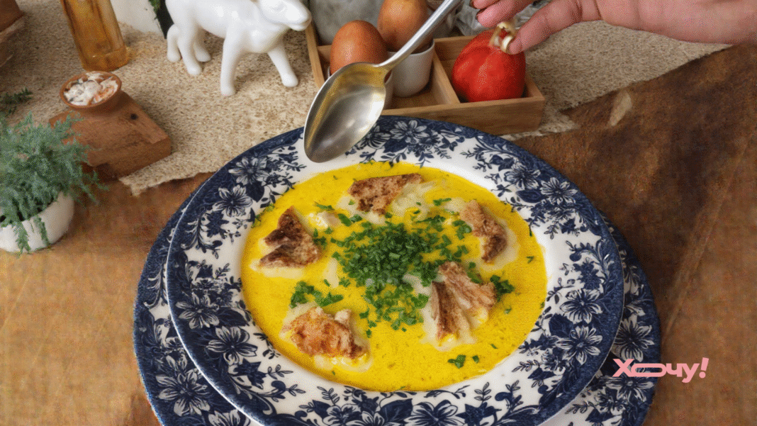 Подавать такой суп вкуснее всего с сухариками. А на десерт приготовьте нежную яблочную шарлотку.